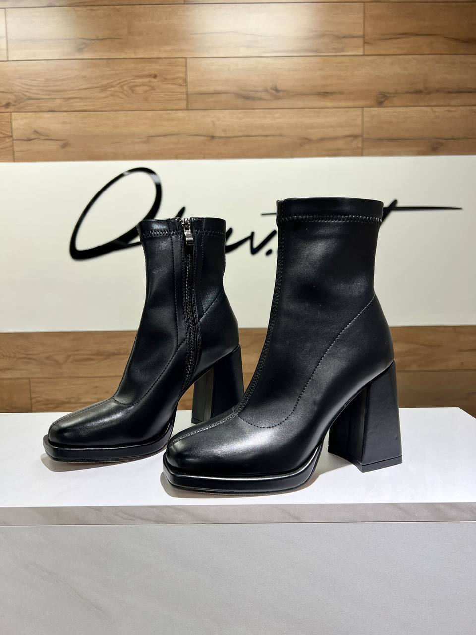 Ботильоны демисезонные со стильным дизайном высотой по щиколотку. Практичные материалы экокожи прослужат долго даже при активной носке. Удобная колодка и баечка на хлопковой основе обеспечивают комфорт вашим стопам. Девять с половиной сантиметровый каблук придаст уверенности каждому шагу.