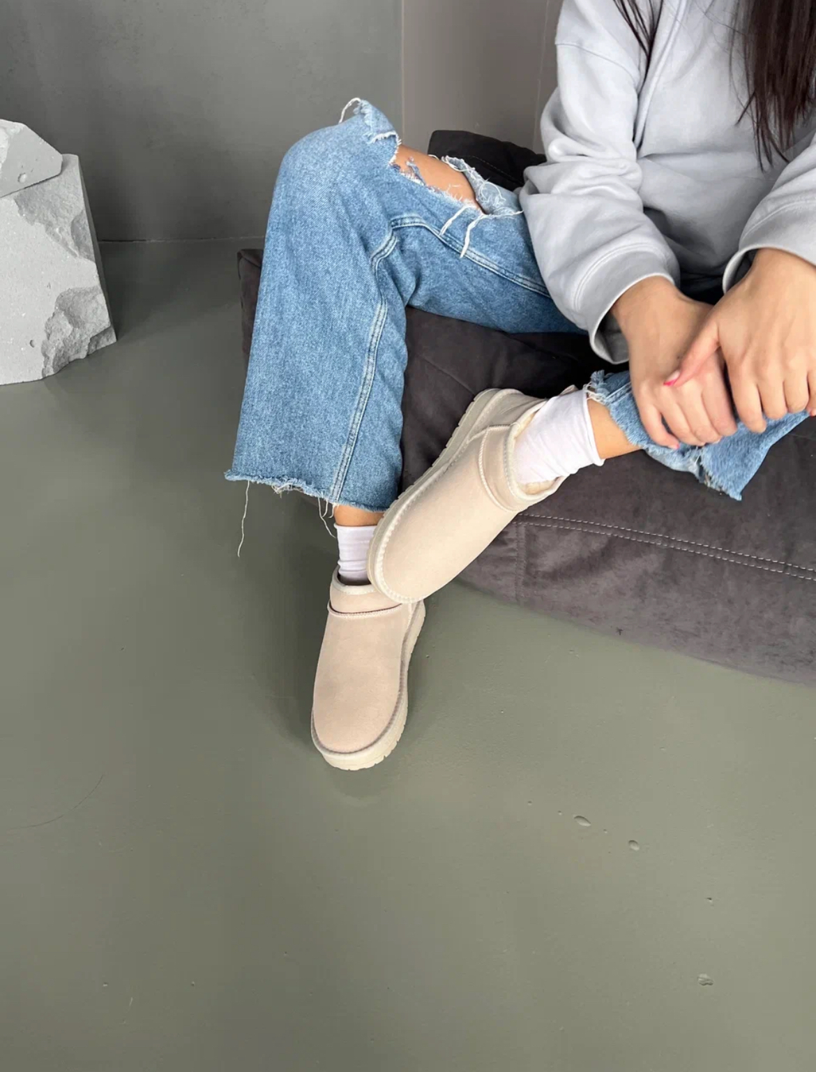 Стильные зимние ботинки, которые согреют ножки даже самой суровой зимой! Внешняя сторона выполнена из качественной натуральной замши бежевого цвета, а внутренняя часть обуви обита теплой и уютной натуральной шерстью. Благодаря этому материалу ваши ноги всегда будут оставаться в тепле и комфорте. Эти удобные и элегантные ботинки подчеркнут ваш индивидуальный стиль и добавят уюта вашему образу. Подарите себе непревзойденное качество и комфорт вместе с нашими зимними ботинками.