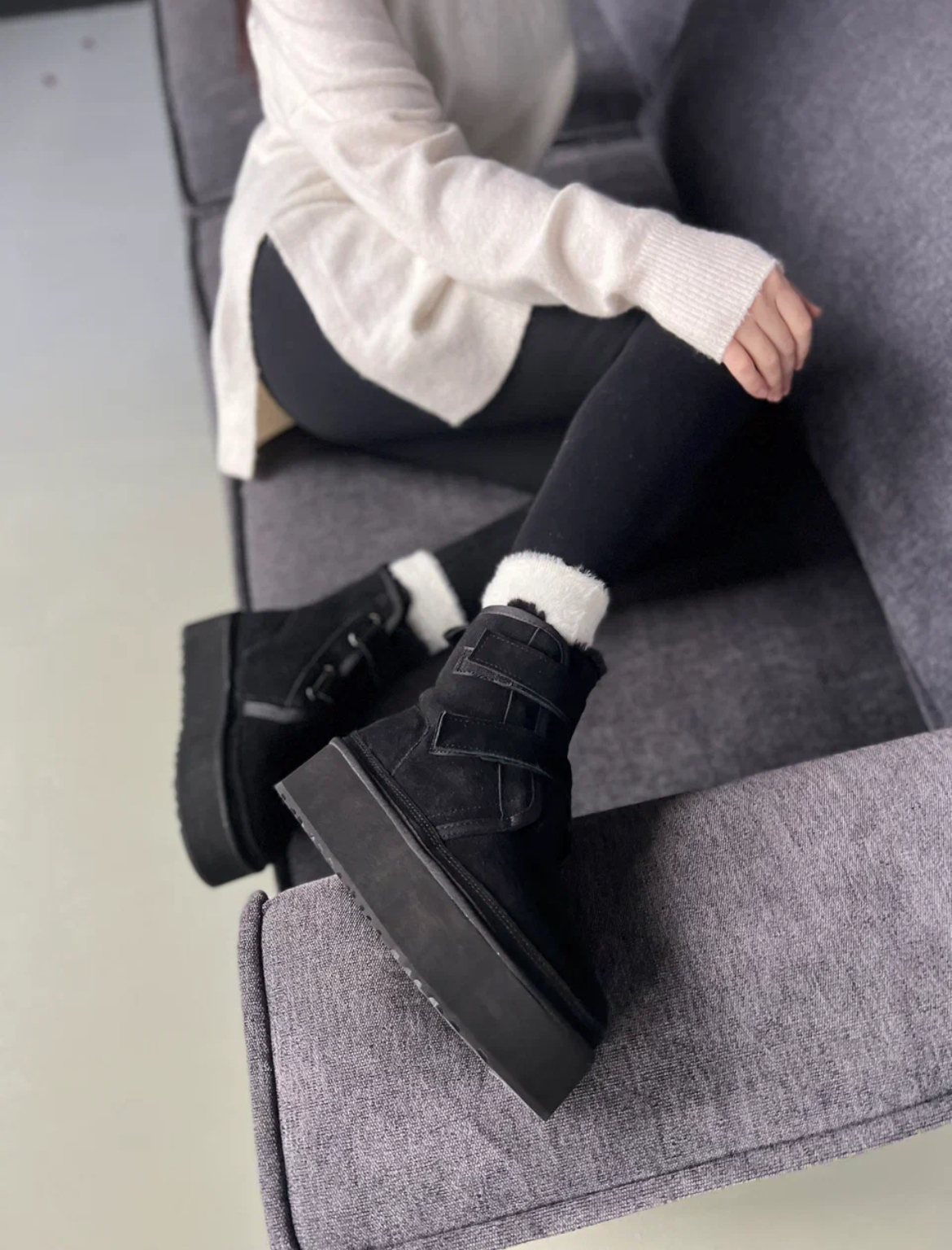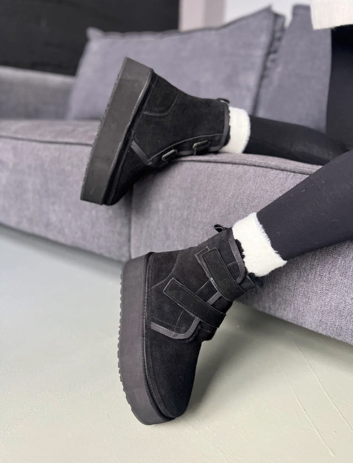 Женские ботинки – это теплое решение для зимних прогулок! Изготовлены из мягкой черной замши, эти стильные ботинки подарят комфорт благодаря внутренней отделке из натуральной шерсти. Удобная липучка облегчит процесс надевания, а прочная подошва обеспечивает уверенное сцепление даже со скользкими поверхностями.