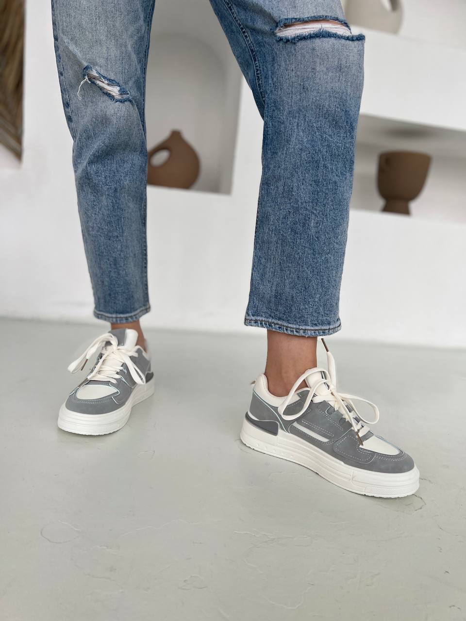 Кроссовки женские – модные кроссовки от известного бренда для активного образа жизни! Высокое качество материалов (экокожи снаружи и текстиля на хлопке внутри) обеспечивает комфорт ногам весь день. Стильные белые и серые цвета отлично сочетаются с любым образом. Практичная шнуровка позволяет надежно зафиксировать обувь по стопе. Выбирайте удобство и стиль вместе с нашими кроссовками!